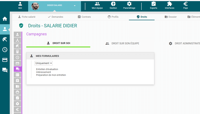 Le collaborateur et les managers auront alors selon leurs droits accès aux formulaires :