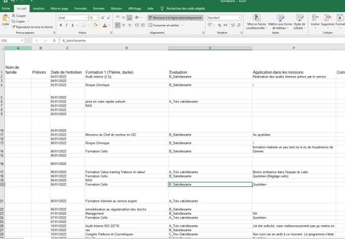 - Donnée provenant d’une table Fastilog (salarié/contrat/entretien précédent, etc.)